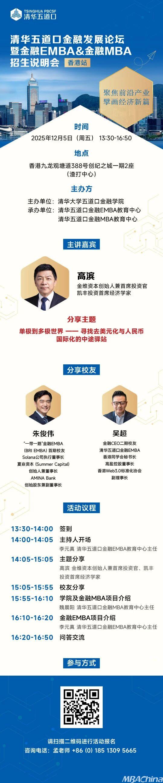 - 12/20 活动报名| 清华MBA项目香港公开课暨招生宣讲会