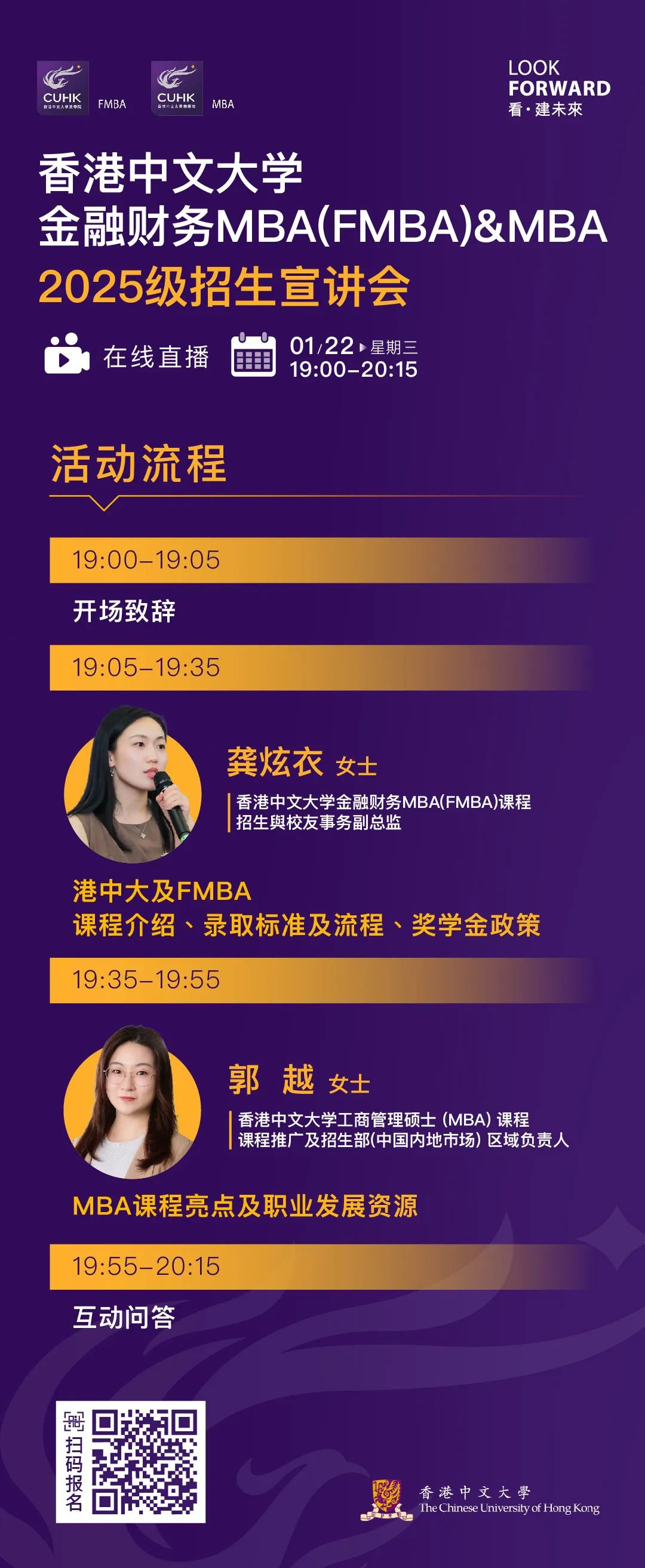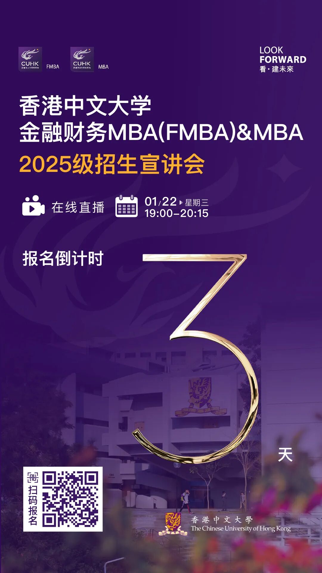 倒计时3天 | 香港中文大学金融财务MBA (FMBA) & MBA 2025级招生宣讲会