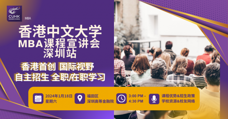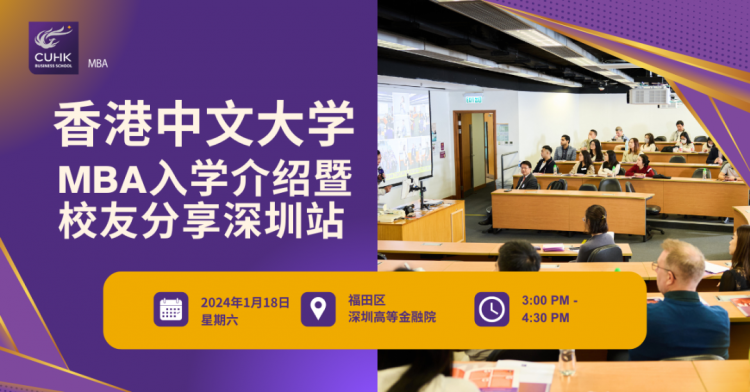 活动报名| 香港中文大学MBA申请第三轮进行中,诚邀您参加1月18日深圳宣讲会!