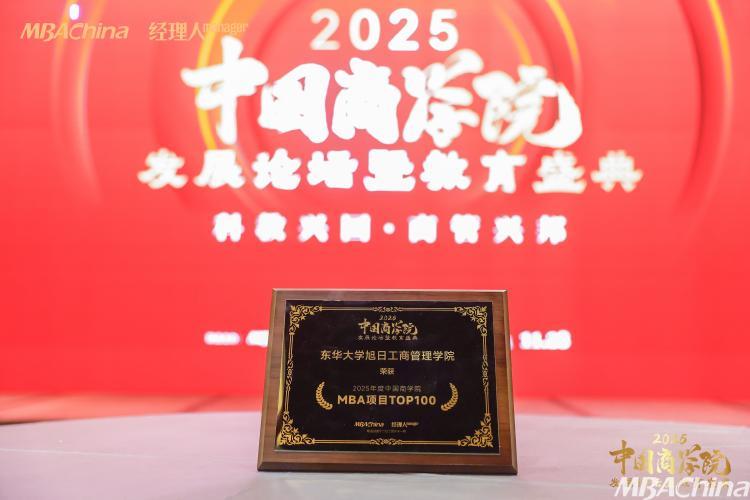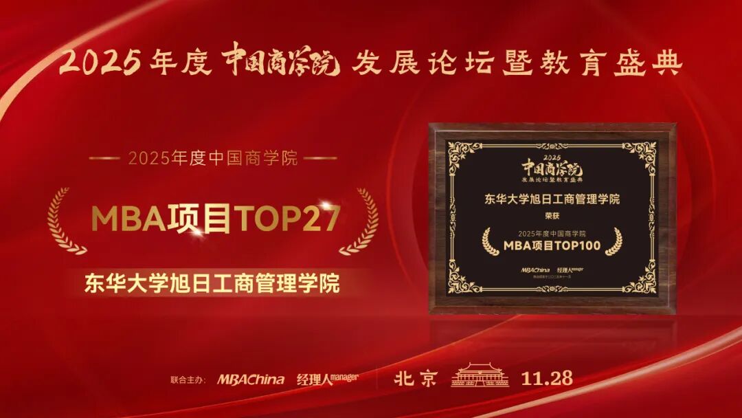喜报!东华大学旭日工商管理学院荣获“2025年度中国商学院MBA项目TOP100”!