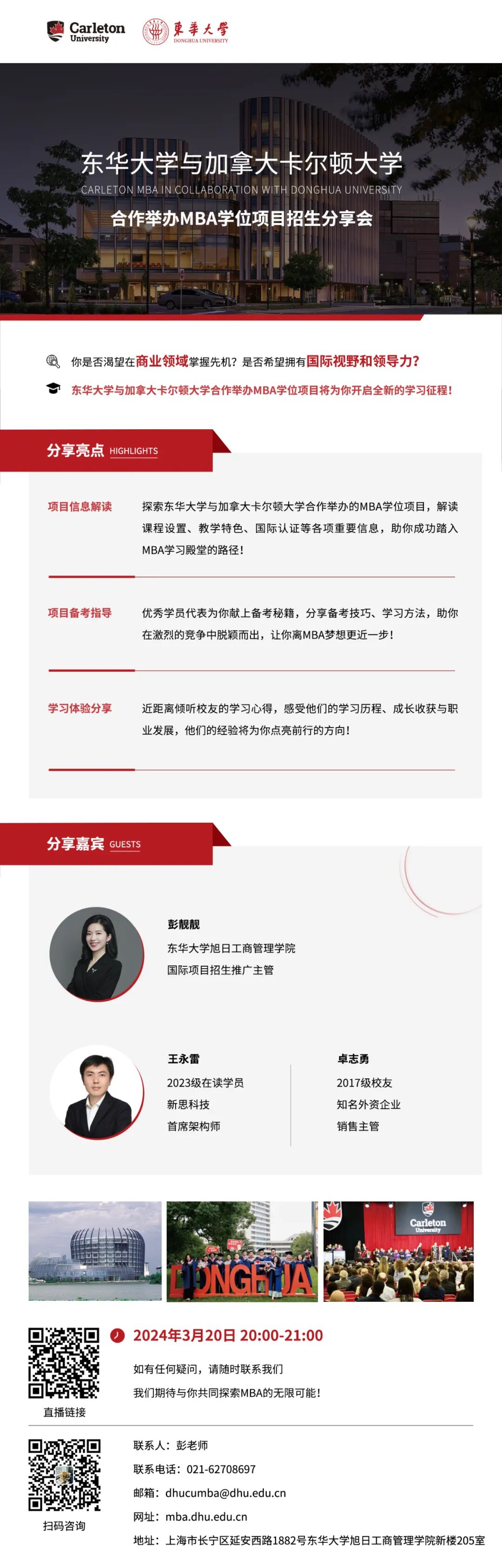中外合作项目 | 东华大学与卡尔顿大学联合培养MBA项目招生通知