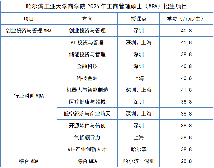 26招生 | 2026年哈尔滨工业大学商学院工商管理硕士(MBA)招生简介