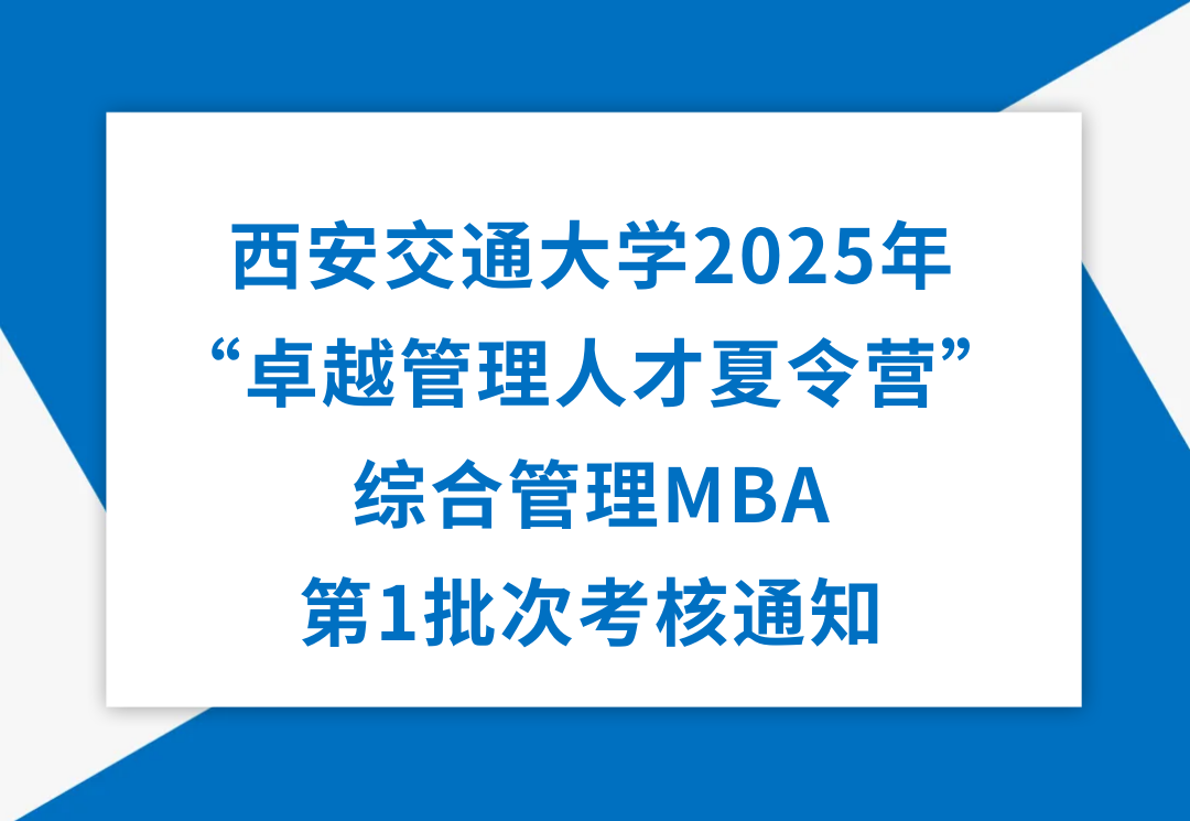 西安交通大学2025年“卓越管理人才夏令营”综合管理MBA第1批次考核通知