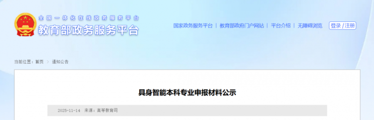 11月14日,教育部网站发布《具身智能本科专业申报材料公示》。2025年《政府工作报告》明确提出培育...