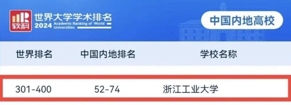 2024年8月15日,“2024软科世界大学学术排名”正式发布,浙江工业大学排名再创新高,位列全球3...