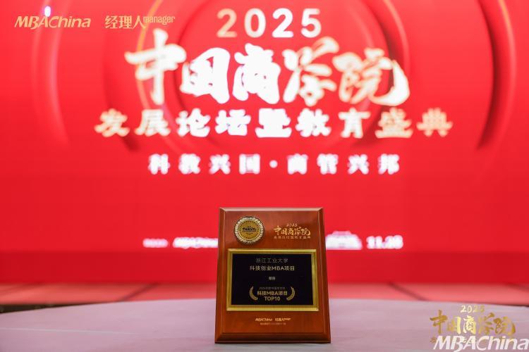 喜报!浙江工业大学科技创业MBA项目荣获2025年度中国商学院科技MBA项目TOP10第十名