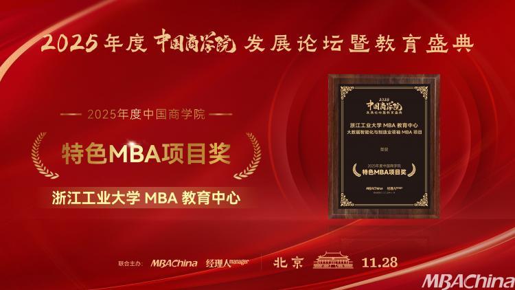 喜报!浙江工业大学MBA教育中心大数据智能化与制造业领袖MBA项目荣获2025年度中国商学院特色MBA项目奖