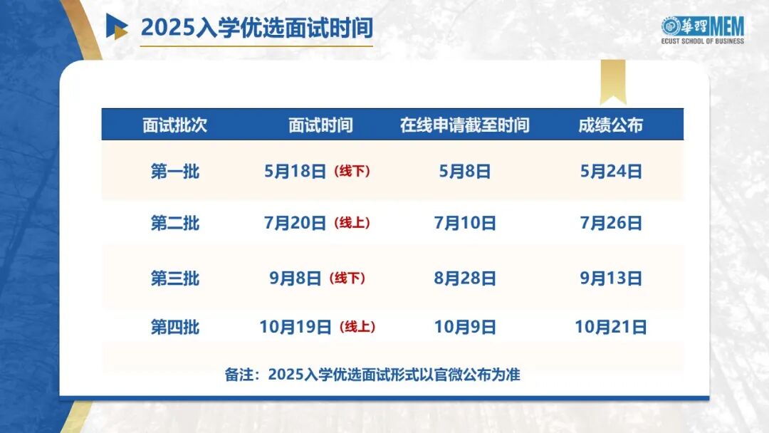 5月18日 | 2025年入学华理MEM第一批次优选面试通知