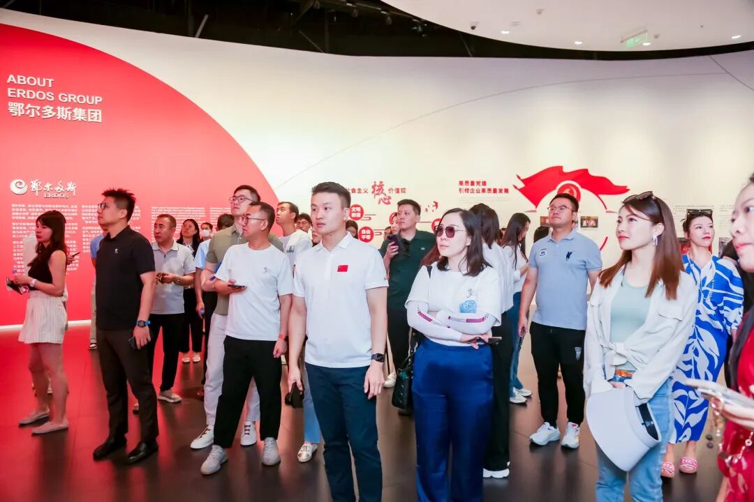 首先,同学们走进鄂尔多斯集团的现代羊绒产业园车间,参观了从羊绒分梳、染色、纺纱到成衣织造等全链条流程,深入了解了鄂尔多斯集团的创业、发展历程以及整体产业布局。