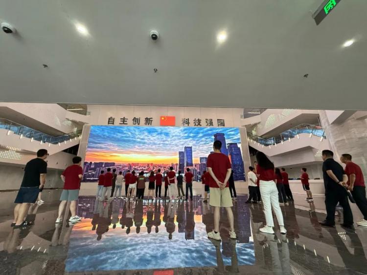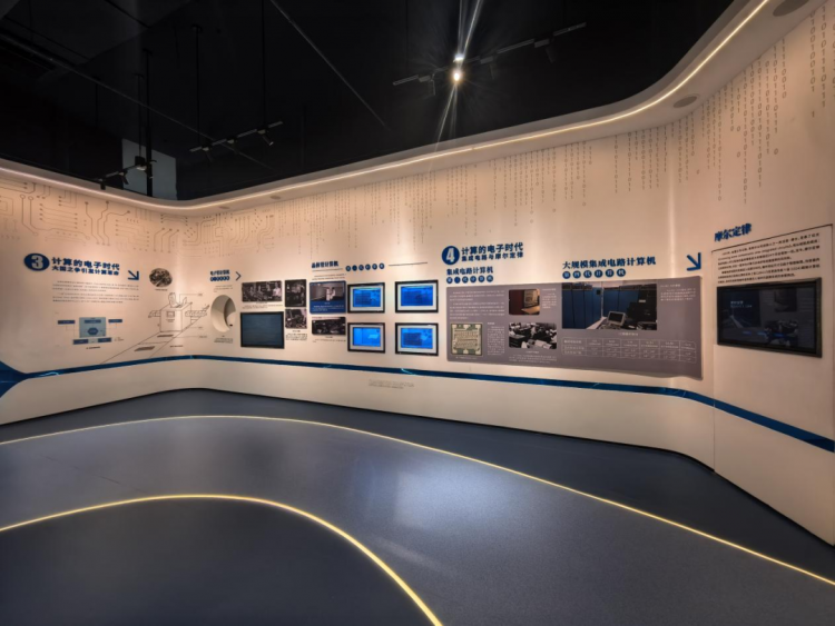 随后,同学们参观了国家超算西安中心的发展历程展示区。通过珍贵的历史资料与实物展示,大家了解到该中心从筹备到建成,逐步发展成为国内领先超算机构的艰辛历程,对其在服务先进制造、生物医药、地球物理、新材料、新能源、人工智能、信息技术等领域所取得的卓越成就有了直观认识。在成果展示厅,巨大的可视化屏幕上实时跳动着复杂的模拟数据和三维模型:同学们看到“天河”系列超算如何助力国产大飞机关键部件的流体动力学仿真,大幅缩短研发周期;了解到它如何驱动精准药物设计,为抗击重大疾病提供强大的“算力药方”;惊叹于其模拟地球深部结构与气候变化的能力,为国家资源勘探与环境保护战略提供科学支撑。新材料研发的微观世界在算力下变得清晰可辨,新能源电池的能量转化效率在一次次虚拟实验中得以优化。尤其在人工智能展区,同学们目睹了超算如何赋能大模型训练、智能决策系统以及城市大脑的运行,深刻感受到它作为国家信息化、智能化转型的核心“数字底座”的关键作用。这些生动的案例无一不印证着,国家超算西安中心正是我国实施创新驱动发展战略、抢占科技竞争制高点的重要载体,其澎湃的算力已深度融入国民经济命脉和关键核心技术攻关的主战场,成为支撑国家科技自立自强、推动产业转型升级、保障国家战略安全不可或缺的“国之重器”。
