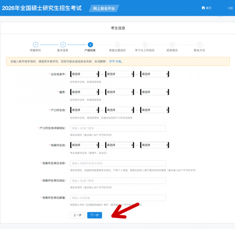 11.填写【户籍档案】,此项请按照个人情况如实填写。