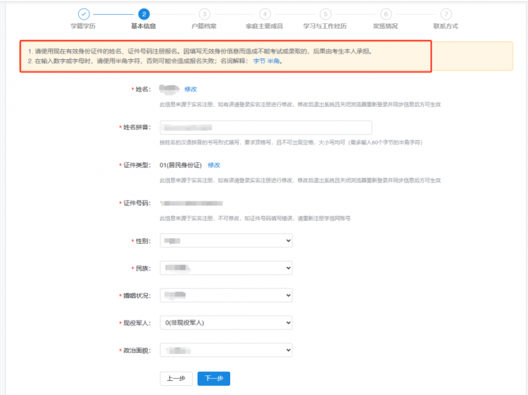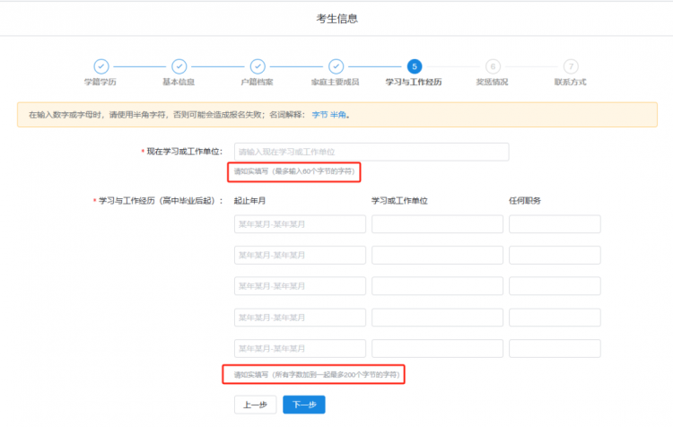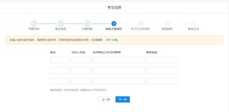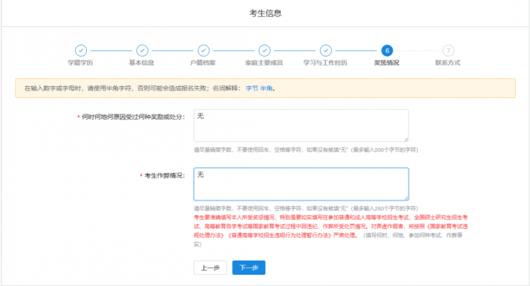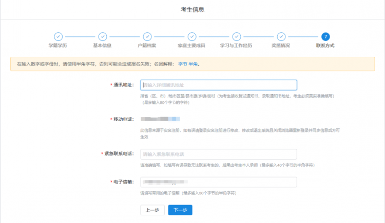 2.认真阅读报名页面所有汉字。准确填报,带*的文本框为必填内容,身份证等使用半角英文输入法输入。