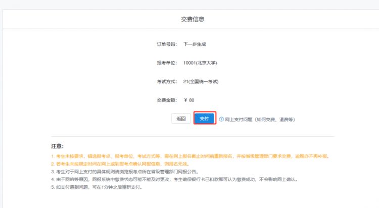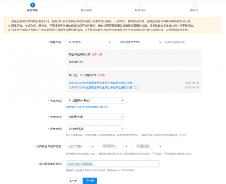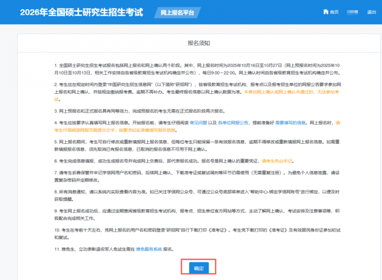 1.网报过程中,招生单位、考试方式、报考点等要慎重选择,一旦生成报名号后则不可以修改。若需要修改,只能再新增一份新的报名信息,然后生成新的报名号。一位考生只能保留一条有效报名信息。