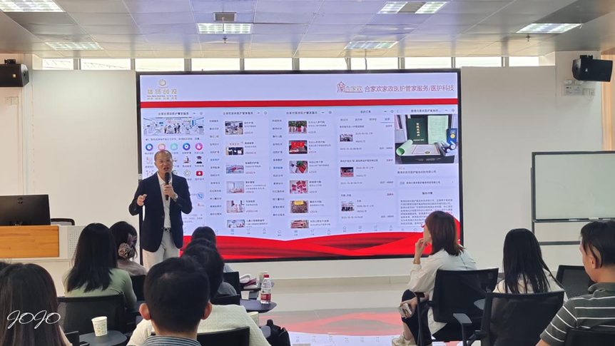 兼任猎贤创投集团董事长的吴伟琪院长首先分享了自身的创业经历,并从企业、学校、政府三个层面系统阐述了智慧康养产业的协同发展路径。他重点介绍了“合家欢家政医护管家服务小程序”——该平台集成了候诊问诊、住院护理、居家照护等功能,直观展示了智慧服务如何高效便捷地链接供需双方,有助于MBA学员深入理解智慧服务在真实商业场景中的落地逻辑。