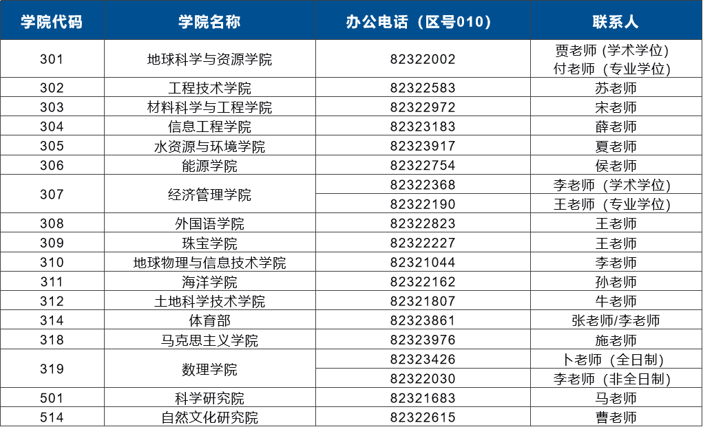 通讯地址:北京市海淀区学院路29号中国地质大学研究生招生办公室;