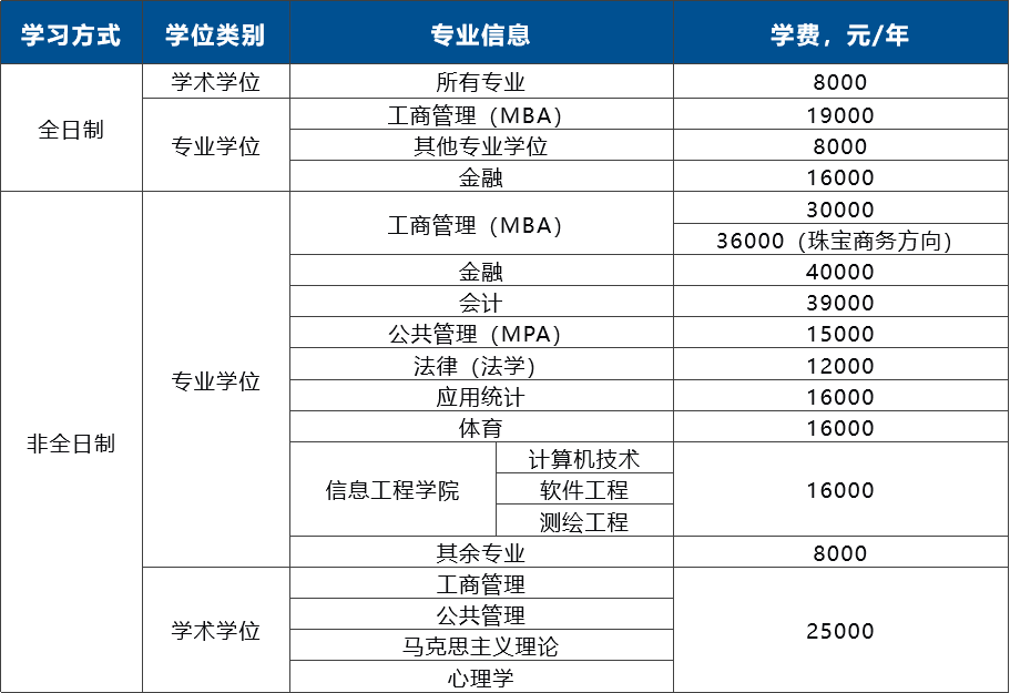 根据国家相关政策规定,凡被我校录取的研究生均须缴纳学费,我校按照北京市发改委、教委、财政局审批的学费标准收取学费,具体见下表。