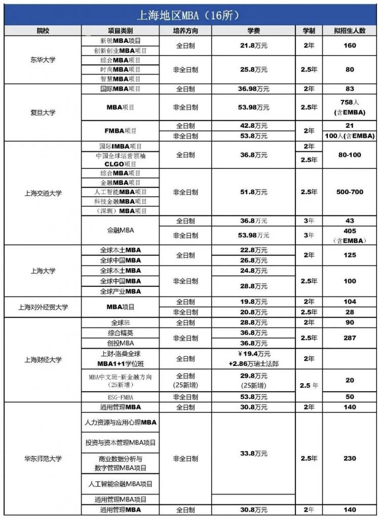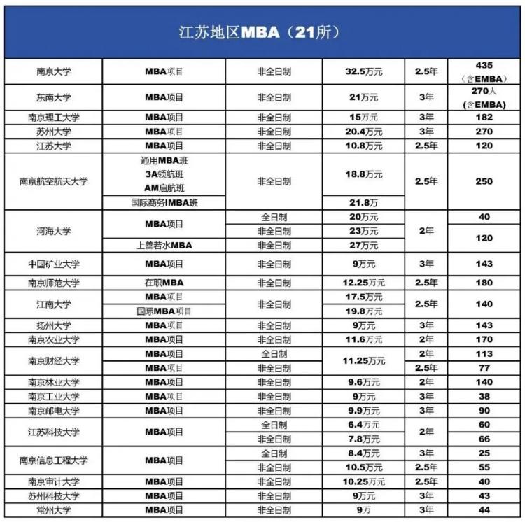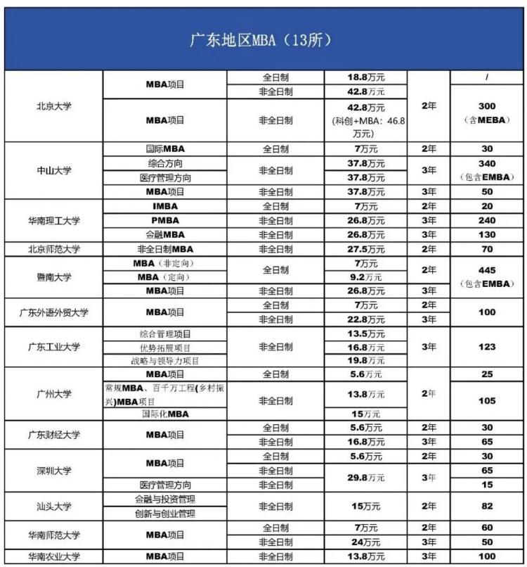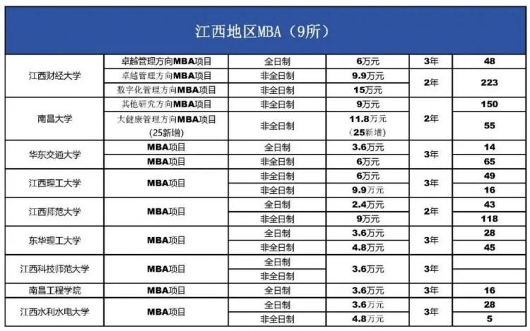 ③ 降价方式更加灵活部分院校采取“降价+缩学制”双重利好。如广州大学非全MBA总学费降至13.8万元、江西师范大学全日制MBA降至2.4万元,学制均由3年缩短至2年。