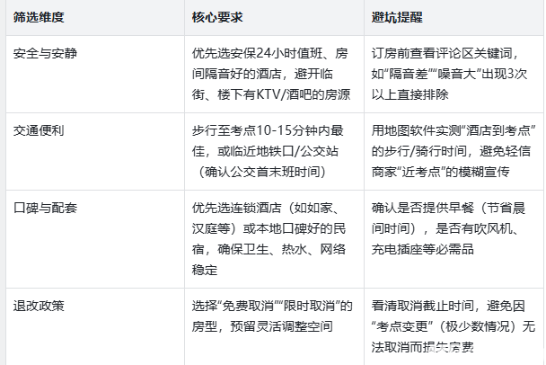 一、住宿预订:提前锁定“安心备考房”,这5个细节决定休息质量