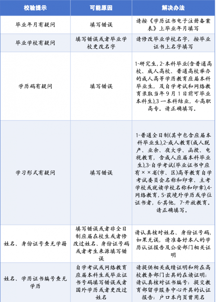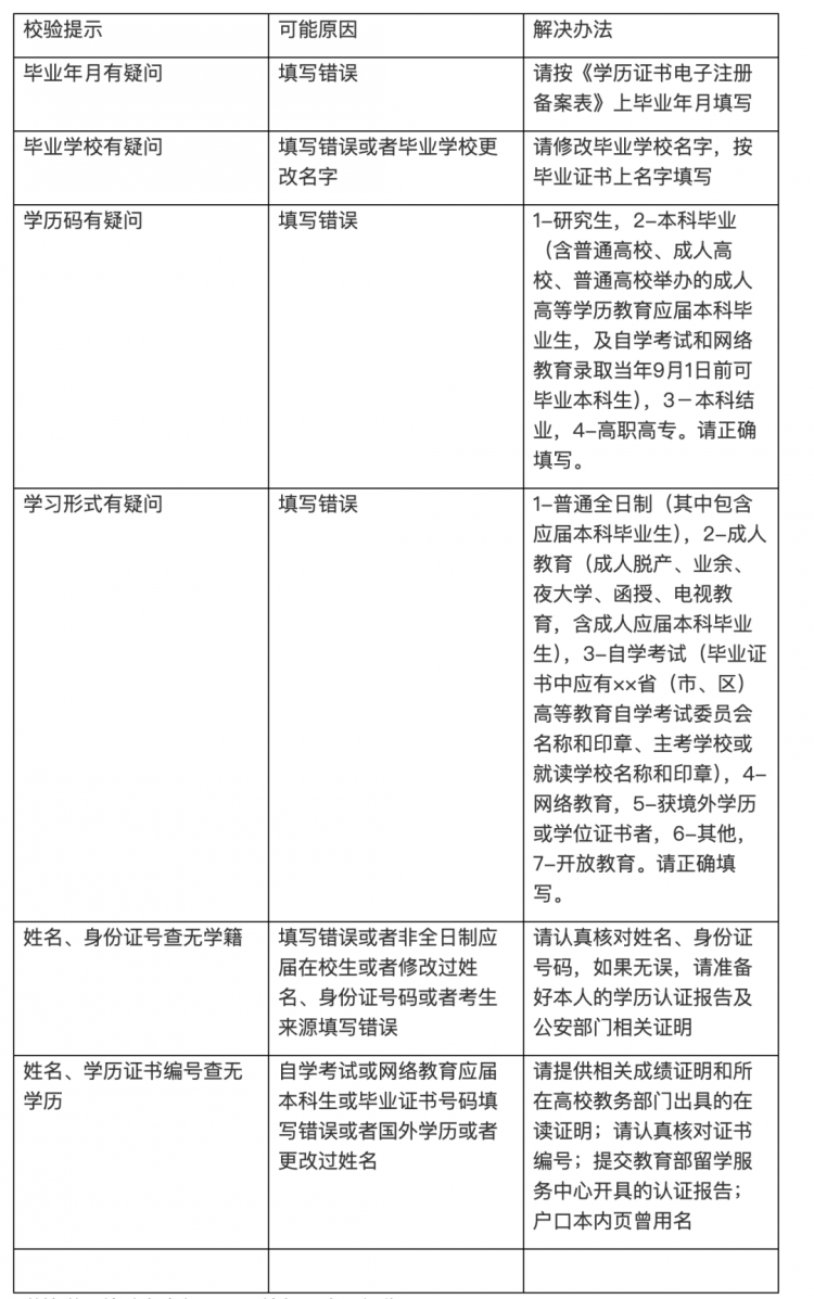 1、学历学籍校验未通过