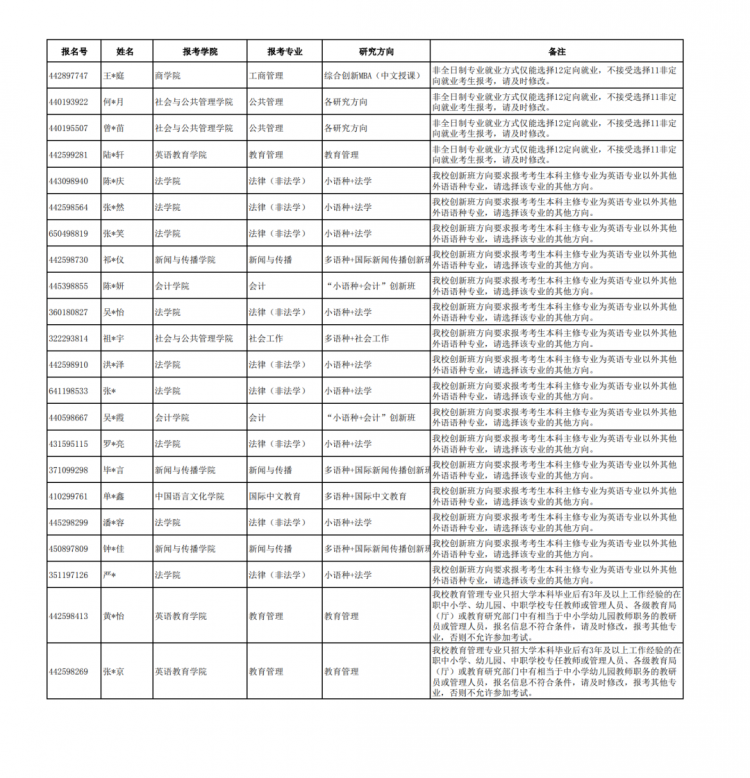 ps:并非所有学校都会发布这类「考生报名不合格的名单」。