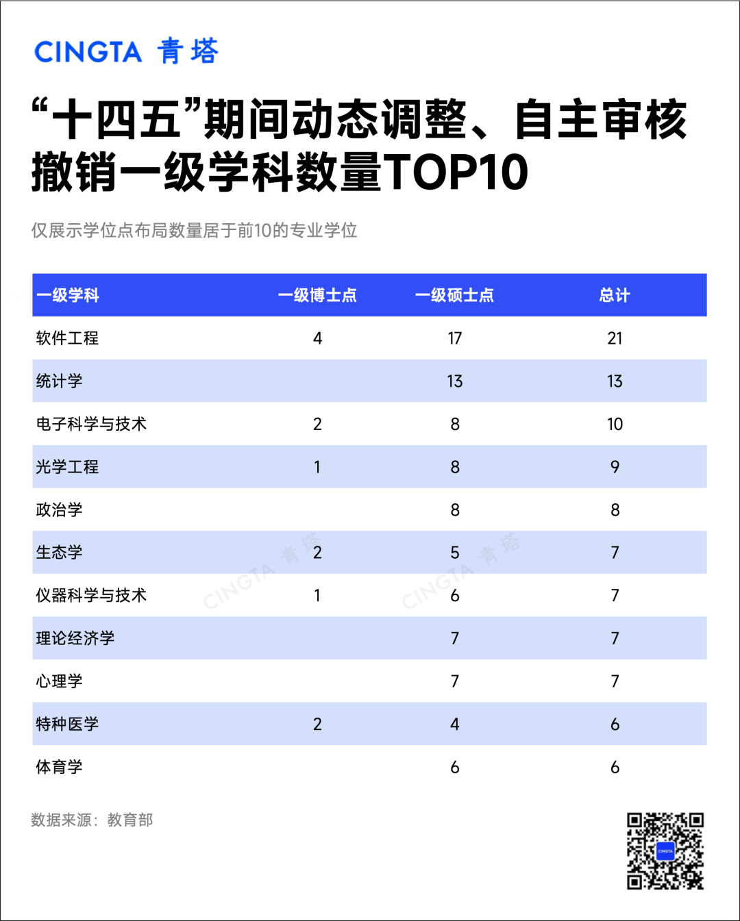 为了解高校主动调整优化学位点的动向,助力高校学科建设,青塔聚焦高校经动态调整、自主审核增列与撤销的学位点情况,从学位点类型、学科专业、单位分布等维度,对比全国高校在“十三五”、“十四五”期间的学位点增撤特征和趋势,并对不同层次高校的学科布局优化调整策略进行剖析,最终形成《2025年度学位点系列报告:全国高校学位点增撤趋势洞察》。